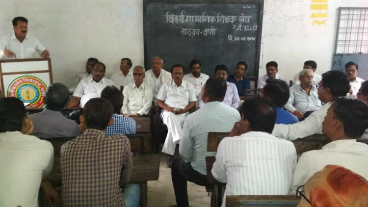 विलास ताजने, मेंढोली : वणी येथील विवेकानंद विध्यालयात विदर्भ माध्यमिक शिक्षक संघाची सभा नुकतीच पार पडली. सभेच्या अध्यक्षस्थानी जनता विध्यालयाचे मुख्याध्यापक एस. टी. बरडे होते. प्रमुख पाहुणे म्हणून विमाशिचे प्रांतीय उपाध्यक्ष अरविंद देशमुख, माजी प्रांतीय उपाध्यक्ष व्ही.बी. टोंगे, जिल्हा अध्यक्ष अशफाक खान, जिल्हा कार्यवाह रामकृष्ण जिवतोडे, एम.डी. धनरे, मनोज जिरापुरे, जिल्हा कार्यवाह विजय खरोडे, जिल्हा संघटक दिवाकर नरुले, अशोक आकुलवार, गोविंद ठावरी, संजय देवाळकर, प्रभू गुंडेवार उपस्थित होते.