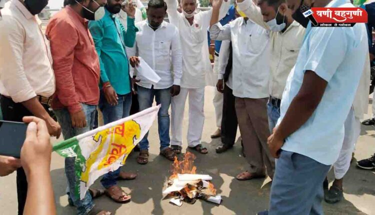 जब्बार चीनी, वणी: “विदर्भाचा मेवा, गेला कुणाला देवा’ जणू काही असंच म्हणत होते आंदोलनकर्ते. विदर्भावर होत असलेल्या आरोपांचा पाढा वाचत सोमवारी 28 सप्टेंबर 2020 ला नागपूर कराराचा निषेध झाला. तसेच होळीही झाली. विदर्भभर जिल्हा स्तरावर,तालुका स्तरावर व गाव स्तरावर या कराराचा होळी करून निषेध करण्यात आला. त्याचाच एक भाग म्हणून वणी येथील टिळक चौक येथे करण्यात आला.