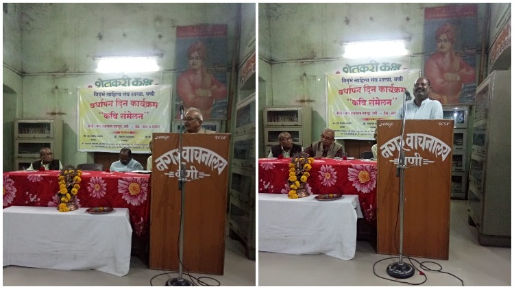 बहुगुणी डेस्क, वणी: येथील विदर्भ साहित्य संघ शाखा वणीच्या वतीने शाखेचा 65 वा वर्धापन दिन स्थानिक कवींचे कवि संमेलन घेऊन साजरा करण्यात आला. या कार्यक्रमाच्या अध्यक्षस्थानी स्थानिक शाखेचे अध्यक्ष प्रा. दिलीप अलोणे हे होते. प्रमुख अतिथी म्हणून केंद्रीय कार्यकारिणी सदस्य माधव सरपटवार उपस्थित होते. यावेळी वणीतील विविध कवींनी त्यांची कविता सादर केली.