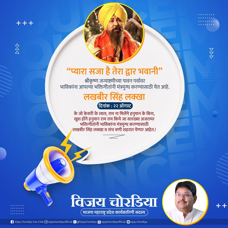 26 ऑगस्ट रोजी कृष्ण जन्माष्टमी आहे. दरवर्षी चोरडिया यांच्या पुढाकारातून जन्माष्टमी सप्ताह राबवला जातो. या निमित्ताने विविध सांस्कृतिक व धार्मिक कार्यक्रमांचे आयोजन केले जाते. वणीकर दर वर्षी यावेळी नवीन काय याची आतुरतेने वाट पाहत असते. यावेळीही वणीकरांना अशीच धार्मिक व सांस्कृतिक मेजवानी राहणार आहे, दिनांक 22 ऑगस्टला सुप्रसिद्ध गायक लखबीर सिंह लख्खा यांच्या कार्यक्रमाने जन्माष्टमी सप्ताहाला सुरुवात होणार आहे. त्यानंतर संपूर्ण आठवडा विविध कार्यक्रम, उपक्रम, स्पर्धा भाविकांसाठी राहणार आहे, अशी माहिती विजय चोरडिया यांनी ‘वणी बहुगुणी’ला दिली.