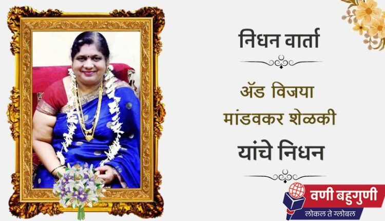 बहुगुणी डेस्क, वणी: ऍड विजया विश्वास शेळकी मांडवकर (50) यांचे मंगळवारी रात्री हृदयविकाराच्या धक्क्याने निधन झाले. त्या बोधेनगर चिखलगाव येथे कुटुंबीयांसह राहत होत्या. त्यांना मंगळवारी संध्याकाळी हृदयविकाराचा तीव्र धक्का आला होता. संध्याकाळी साडे सात वाजताच्या सुमारास त्यांचे निधन झाले. त्या वणी न्यायालयात सेवा द्यायच्या. तसेच त्या राजूर ग्रामपंचायतीच्या माजी सदस्य देखील होत्या. एक वकिल व सामाजिक कार्यकर्त्या म्हणून त्यांची ओळख होती. त्यांच्या पश्चात पती, मुलगी व आप्त परिवार आहे. त्यांच्या एकाएकी निधनाने शोक व्यक्त केला जात आहे. त्यांची अंत्ययात्रा आज बुधवारी दिनांक 26 मार्च रोजी सकाळी 11 वाजता त्यांचे राहते घर बोधे नगर चिखलगाव येथून निघणार आहे. दरम्यान वणीतील वकिलांतर्फे त्यांना श्रद्धांजली वाहण्यात आली आहे.