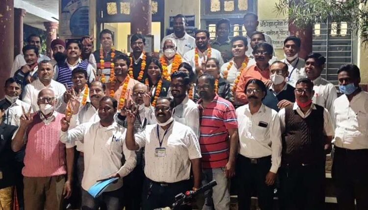 जितेंद्र कोठारी, वणी: बार असोसिएशन वणीच्या निवडणुकीत एकता पॅनलने प्रतिस्पर्धी परिवर्तन पॅनेलचा धुव्वा उडवीत सर्व 11 उमेदवार निवडून आणले. सन 2022 ते सन 2025 या 3 वर्षासाठी बार असोसिएशनची कार्यकारिणी निवडण्यात आली आहे. बार असोसिएशनच्या अध्यक्षपदी ऍड. ज्ञानेश्वर कातकडे तर सचिव पदावर ऍड. सुशील काळे यांची निवड झाली आहे.