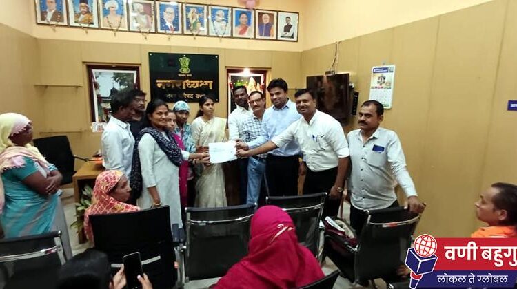 बहुगुणी डेस्क, वणी: वणी नगर परिषदेच्या वतीने दिव्यांग बांधवांसाठी राखीव असलेल्या 5% निधीचे वितरण करण्यात आले असून यासाठी ₹27,48,600 इतका निधी मंजूर करण्यात आला आहे. या संदर्भात 01/04/2026 रोजी नगर परिषद कार्यालयात बैठक पार पडली. या बैठकीस नगराध्यक्ष विद्या खेमराज आत्राम, उपाध्यक्ष राकेश बुग्गेवार, मुख्याधिकारी सचिन गाडे, उपमुख्याधिकारी जयंत सानटक्के तसेच धम्मा पाटील यांची प्रमुख उपस्थिती होती. याशिवाय दिव्यांग कार्यकारिणीचे अध्यक्ष गणेश आवारी, उपाध्यक्ष भूषण आदे, सचिव विद्या पानघाटे, कोषाध्यक्ष प्रतिभा लांजेवार यांच्यासह विनोद गौरकर, किशोर लांजेवार, निखत कौसर, गणेश बंड, अशोक दुरुतकर, छाया मांढरे, मेघा देशपांडे, युसुफ शेख, रविंद्र पोटदुखे, आशा उरकुडे आणि अनेक दिव्यांग बांधव मोठ्या संख्येने उपस्थित होते. नगर परिषदेकडून दिव्यांग बांधवांच्या सर्वांगीण विकासासाठी 5% निधीअंतर्गत हा धनादेश मंजूर करण्यात आला असून या निर्णयामुळे शहरातील दिव्यांग बांधवांमध्ये समाधान आणि आनंदाचे वातावरण निर्माण झाले आहे.