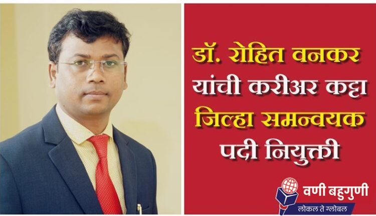 पुरुषोत्तम नवघरे, वणी: महाराष्ट्र राज्य उच्च व तंत्र शिक्षण विभाग आणि महाराष्ट्र माहिती तंत्रज्ञान सहाय्यता केंद्र यांच्या संयुक्त विद्यमाने राबविण्यात येणाऱ्या करिअर कट्टा या उपक्रमासाठी यवतमाळ जिल्हा समन्वयक म्हणून नूरजहाँ बेगम सलाम अहमद आर्टस् अँड कॉमर्स कॉलेजचे प्राचार्य डॉ. रोहित सुधाकर वनकर यांची नियुक्ती करण्यात आली आहे. ही नियुक्ती महाराष्ट्र माहिती तंत्रज्ञान सहाय्यता केंद्राचे अध्यक्ष यशवंत शितोळे यांनी केली. जिल्ह्यातील महाविद्यालयांमध्ये करिअर कट्टा उपक्रम प्रभावीपणे राबविण्यासाठी ही जबाबदारी सोपविण्यात आली आहे. डॉ. वनकर यांनी या नियुक्तीचे श्रेय महाराष्ट्र माहिती तंत्रज्ञान सहाय्यता केंद्राचे अध्यक्ष यशवंत शितोळे, सचिव डॉ. राणानूर सिद्धिकी, प्राचार्य डॉ. अविनाश घरडे, ऍड. निलेश चौधरी, डॉ. दिनेश खेडकर आणि डॉ. प्रवीण कुलकर्णी यांना दिले आहे.