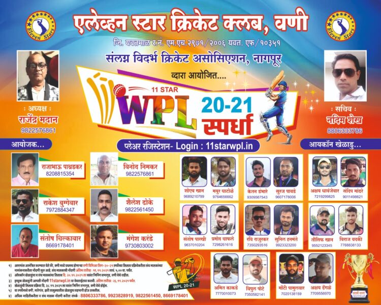 'वणी प्रीमियर लीग' साठी आयोजक आणि स्टार खेळाडूची नोंदणी 19 नोव्हेंबर ला